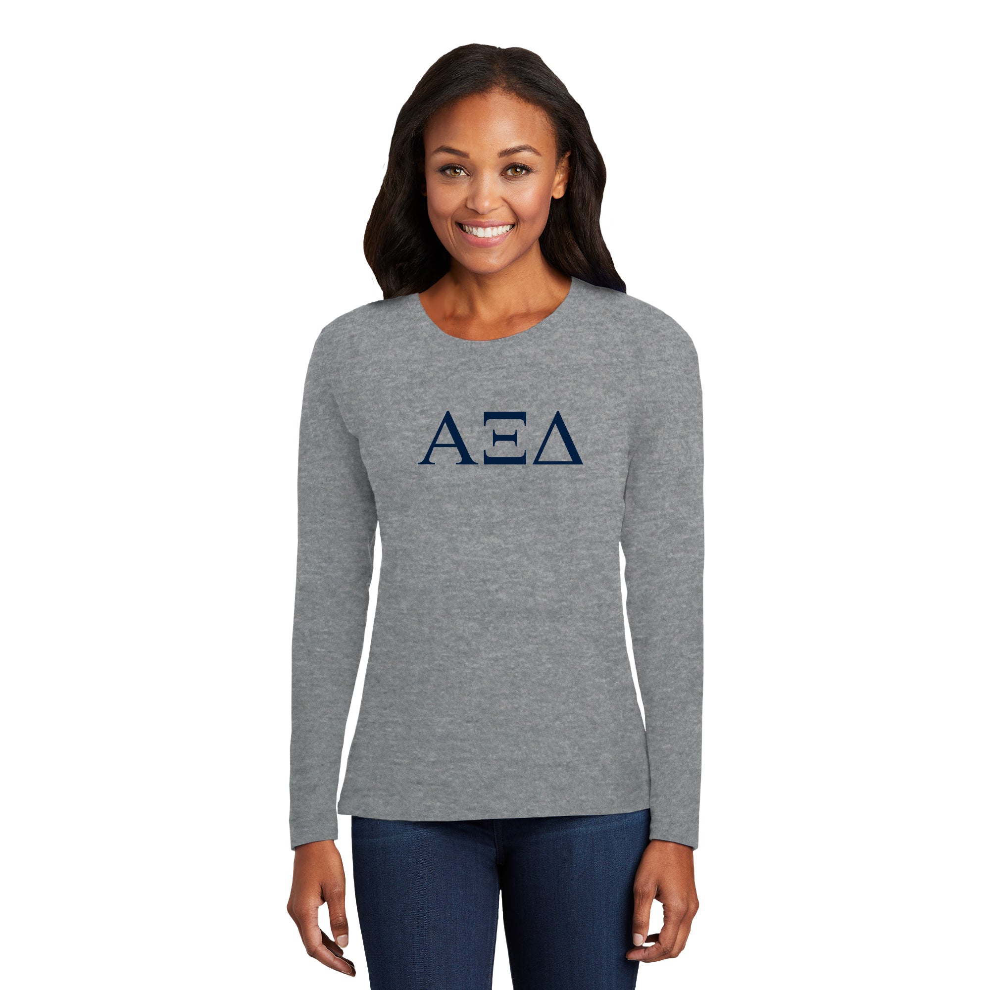Alpha Xi Delta Greek Letter Block Womens Long Sleeve - Athletic Heather