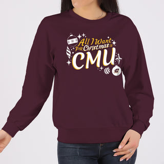 Central Michigan Chippewas All I Want For Christmas Is CMU Crewneck Sweatshirt - Maroon