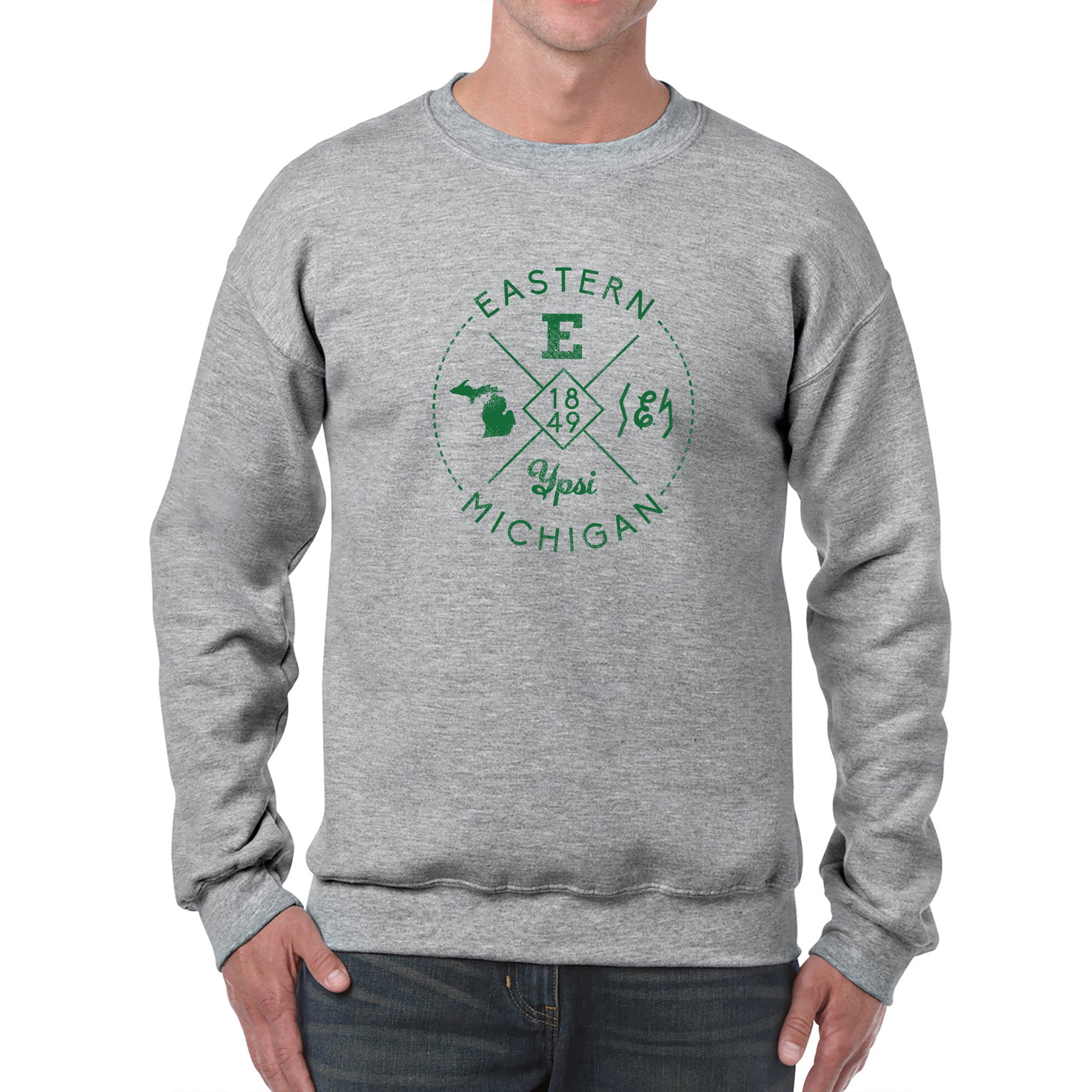 • Whether you are tailgating at an Eastern Michigan football game, or in the stands cheering on the Eagles Basketball team, show off your EMU Pride with this great crewneck sweatshirt.