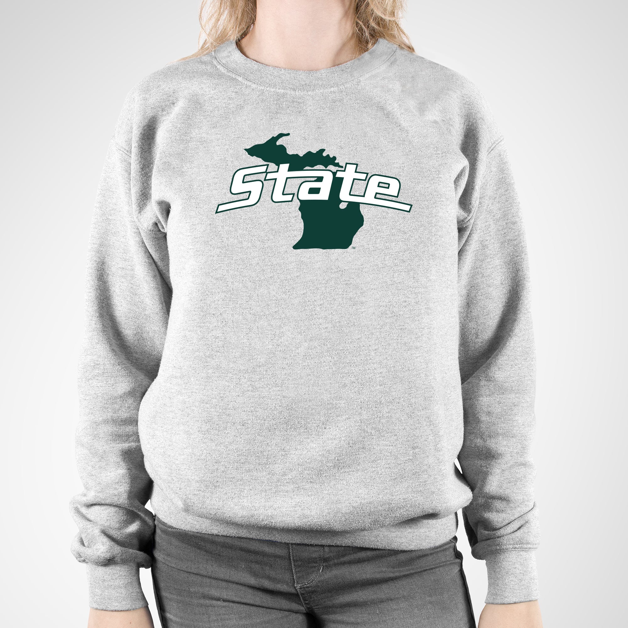 MSU State Outline Logo Crewneck - Sport Grey