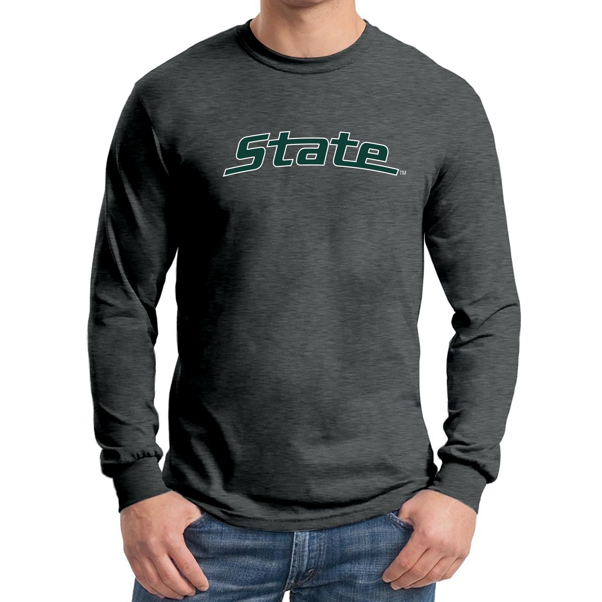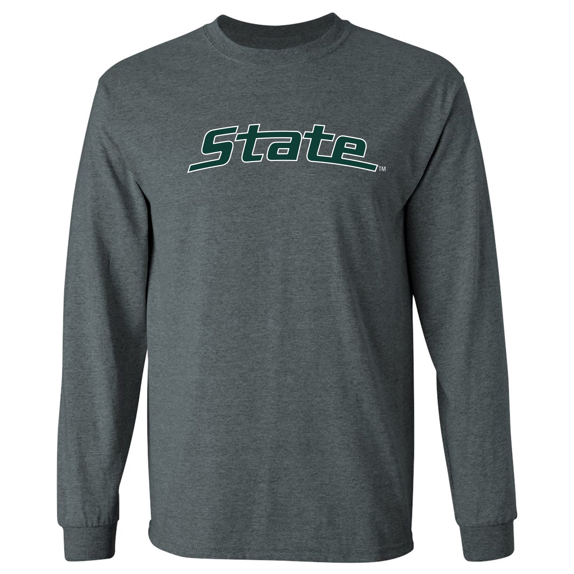 MSU State Wordmark Outline Long Sleeve - Dark Heather