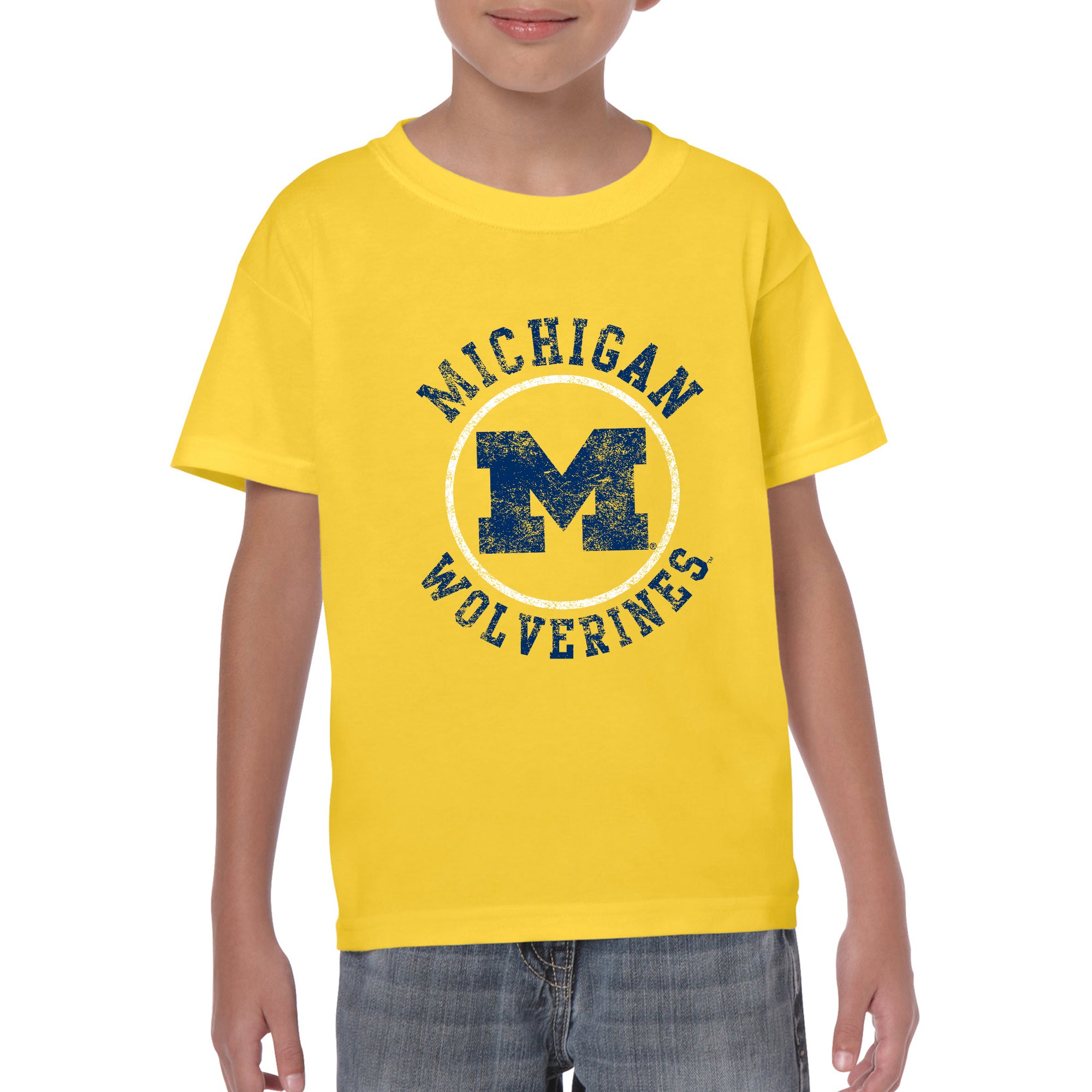 Michigan Distressed Circle Logo Youth T-Shirt - Daisy