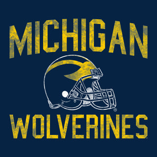 University of Michigan Wolverines Faded Football Helmet Basic Cotton Short Sleeve T Shirt - Navy