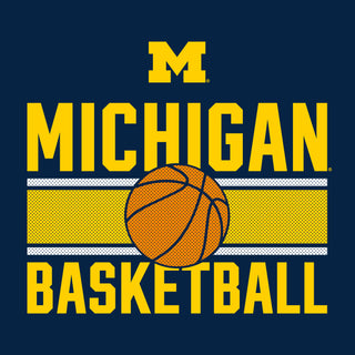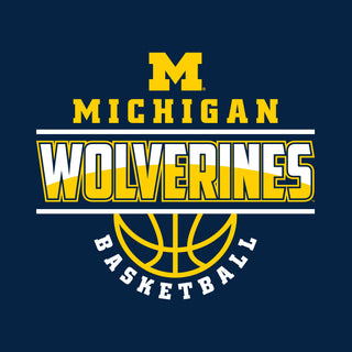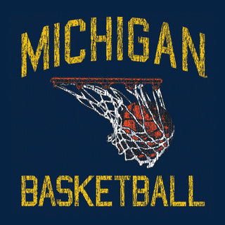 University of Michigan Wolverines Basketball Mesh Basic Cotton Short Sleeve T Shirt - Navy