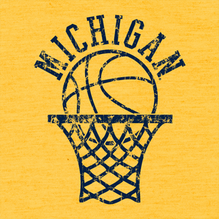 University of Michigan Wolverines Retro Basketball Hoop Canvas Triblend Short Sleeve T Shirt - Yellow Gold