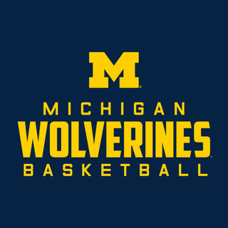 Michigan Mascot Wordmark Basketball Basic Cotton Short Sleeve T Shirt - Navy