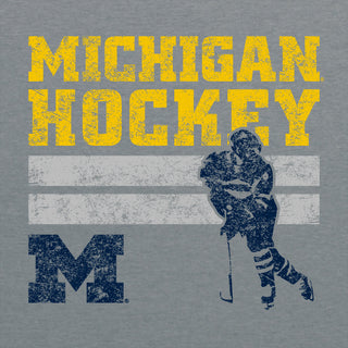 University of Michigan Retro Hockey Basic Cotton Short Sleeve T Shirt - Graphite Heather