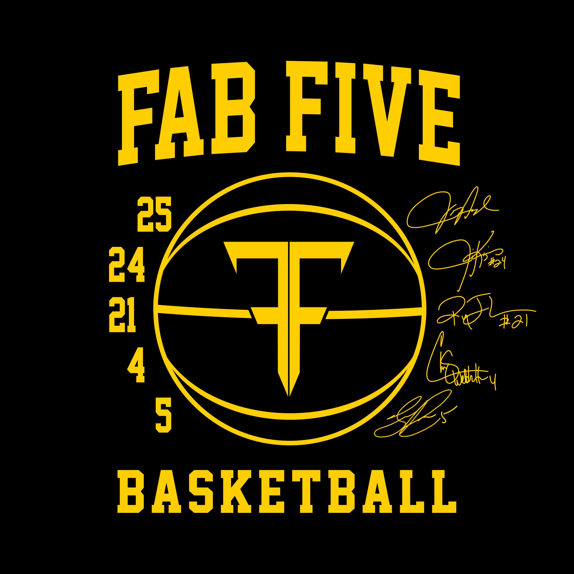 The Fab Five were the 1991 University of Michigan men's basketball team the greatest recruiting class of all time. The class consisted of Chicago Native Juwan Howard (#25), two recruits from Texas: Plano's Jimmy King (#24) and Austin's Ray Jackson (#21), Detroit natives Chris Webber (#4) and Jalen Rose (#5), The Fab Five were the first team in NCAA history to compete in the championship game with all-freshman starters.Â