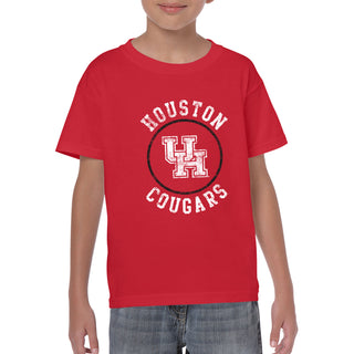 University of Houston Cougars Distressed Circle Logo Heavy Cotton Short Sleeve Youth T Shirt - Red
