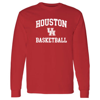 Houston Cougars Arch Logo Basketball Long Sleeve T Shirt - Red