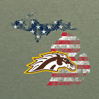 Western Michigan Patriotic State Silhouette T-Shirt - Heather Military
